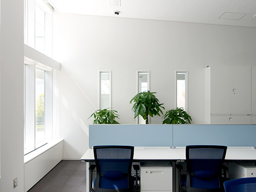 As "a laboratory in harmony with the environment," the center is an eco-friendly facility that leverages a comprehensive range of environmental and energy-saving technologies all around us-solar energy, natural lighting systems, an ice storage cooling and heating system, and high-speed variable air volume (VAV) control system that reduces energy loss in air conditioning operation.